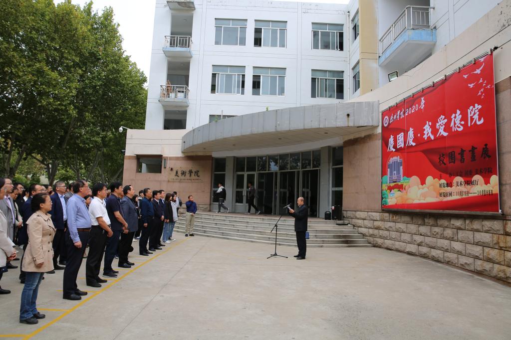 翰墨飘香歌盛事,丹青亮彩写华章。值此仲秋、国庆来临之际,为全面贯彻落实习近平新时代中国特色社会主义思想和党的十九大精神,围绕立德树人,通过丰富多彩、积极向上的校园书画活动,凝聚校园精神,提升师德建设水平,继承和弘扬中华民族优秀传统文化艺术,丰富广大师生业余文化生活,10月2日,由校工会、团委、夜插内射视频网站-联合主办的“庆国庆·我爱德院”校园书画展在美术楼前举行了开展仪式。