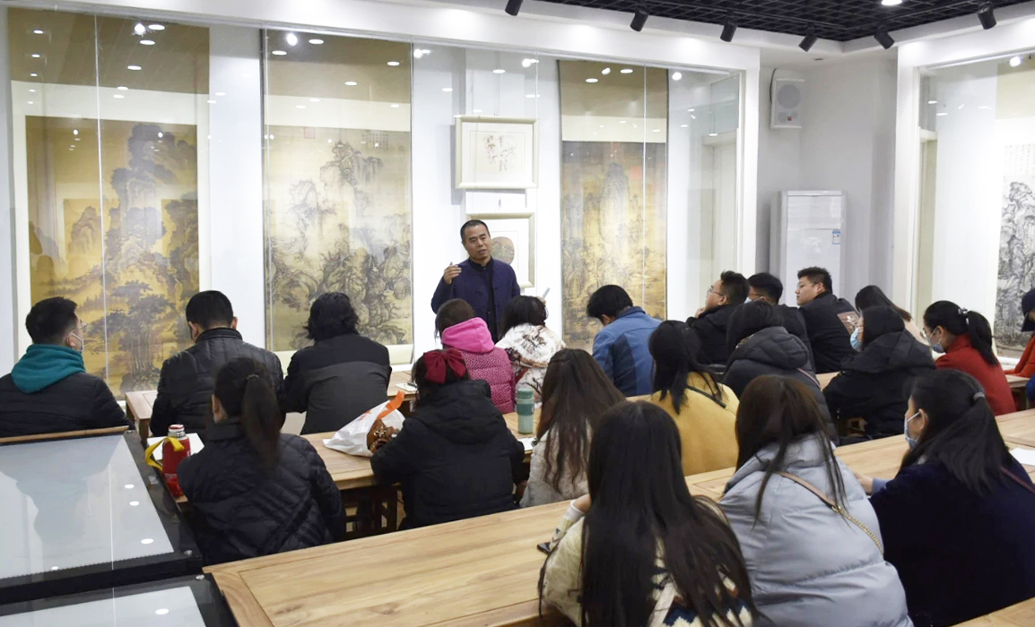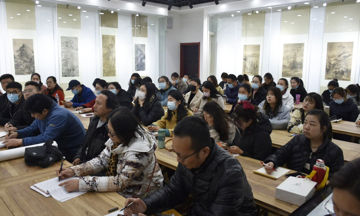 3月23日上午,夜插内射视频网站-与德城区教研室在美术楼古画临摹室联合举办“德城区中小学美术教师国画素养培训会”,夜插内射视频网站-副教授王玉民受邀作了《由中西美术对比看中国画的美学内涵》的专题讲座,并对教师的国画作品进行点评指导。全区中小学美术骨干教师共60人参加了此次培训。