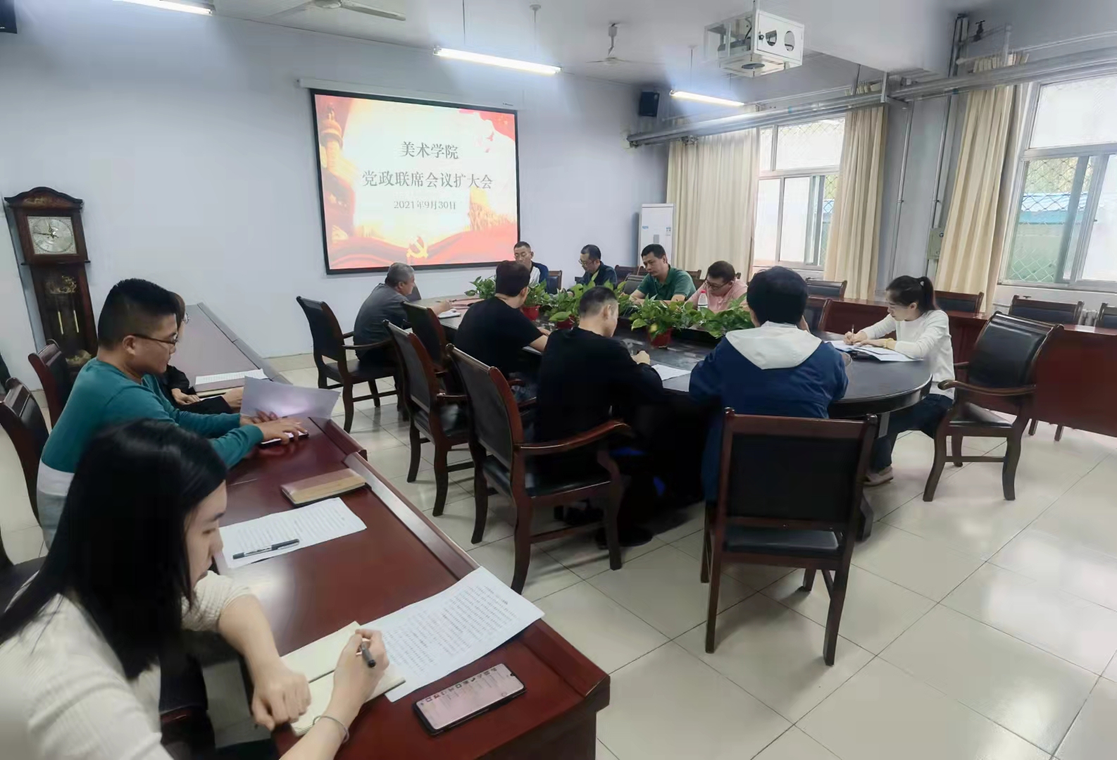 9月30日下午,夜插内射视频网站-召开党政联席会议扩大会,专题研究部署安全稳定工作。夜插内射视频网站-班子成员、系(中心)主任、工会主席、辅导员及班主任参加了本次会议。
