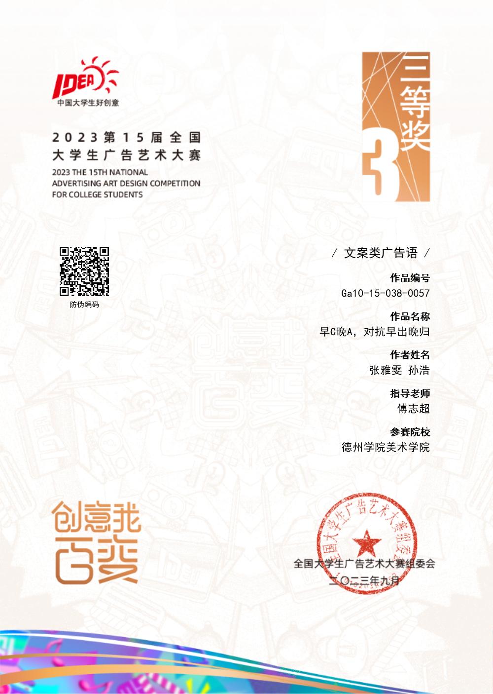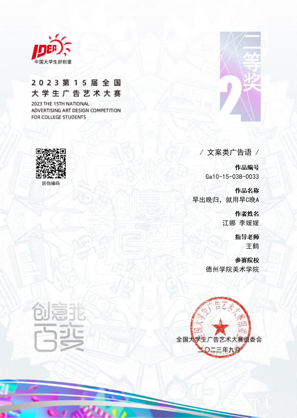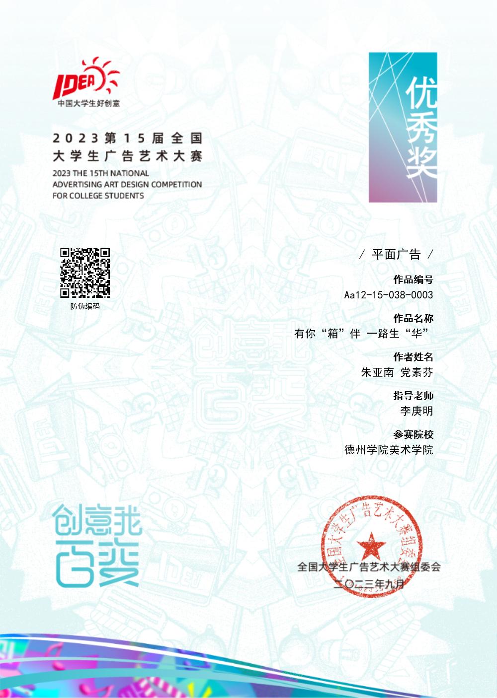 9月6日,第15届全国大学生广告艺术大赛全国总评奖项公布,夜插内射视频网站-选送作品最终获国家二等奖1项,三等奖2项,优秀奖1项,获奖层次与数量在省内同类院校中名列前茅。