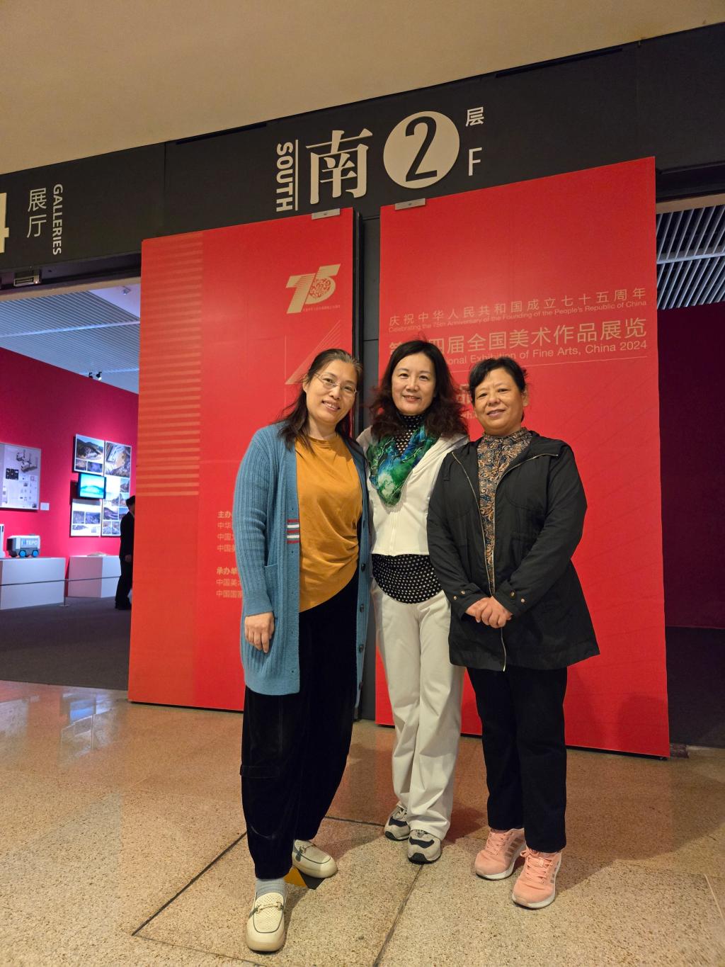 本届全国美展坚持以习近平文化思想为指引,紧扣庆祝中华人民共和国成立75周年和习近平总书记主持召开文艺工作座谈会并发表重要讲话10周年的重大时间节点、重大主题,充分展示近五年来我国美术事业发展新成果新成就,多彩呈现中国式现代化新面貌新气象。老师们通过现场观摩,就作品的创作理念、表现手法、艺术特色等方面进行深入交流和探讨,寻找自身的差距与不足,此次活动对今后的创作与教学有着重要的借鉴作用。