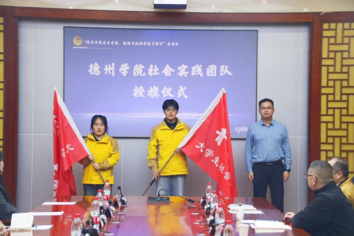 会上,团县委书记朱好程为德州学院“青宁美韵”和“宁机青锋”两支大学生社会实践团队授旗,标志着校地合作迈出了实质性的一步。县产业办副主任解付平详细介绍了宁津县的产业发展情况和总体用工需求,县文联主席刘文浩介绍了全县的文化艺术资源相关情况。