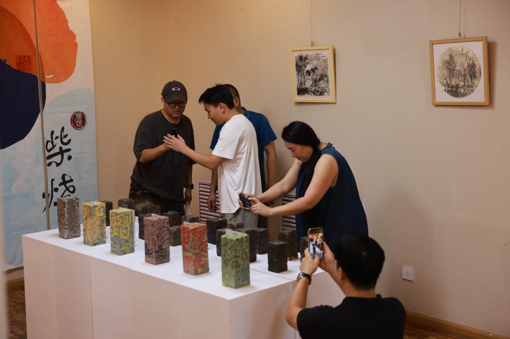 本次创作营活动旨在通过创作、研讨与展览,推动陶瓷艺术特别是陶瓷印章文化的交流、普及与创新发展。陶艺家们与我校师生深入挖掘本土文化,通过留学生董子文化街游学体验、梁子黑陶文化园柴窑烧制等实践活动进行了集体创作。展览展出了百余件陶瓷印作品,兼有青花、颜色釉、雕塑、柴烧等多种形式,巧妙融合了绘画、书法、金石篆刻、雕塑等艺术语言,展现了陶瓷艺术的独特魅力与丰富表现力。创作营艺术家与我校师生展开了深入交流研讨,围绕风格手法、人才培养、理论研究等话题共同探索陶瓷艺术的当代发展之路。