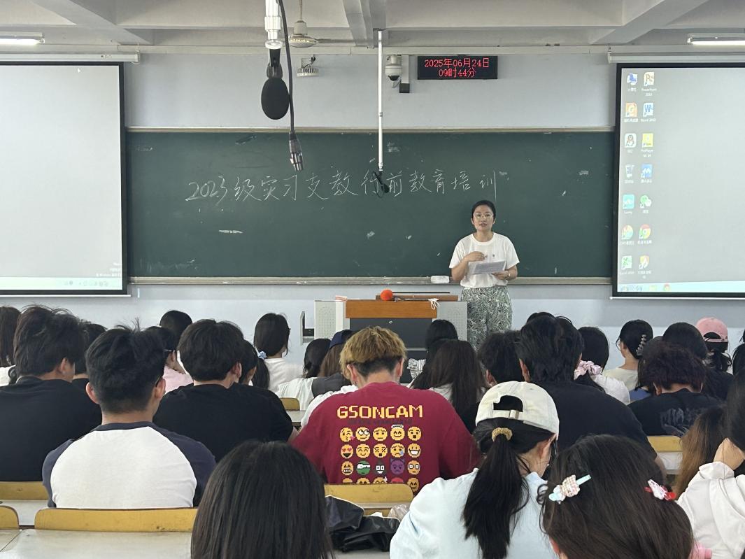 负责老师强调:“支教不仅是知识的传递,更是一份沉甸甸的社会责任。每一位志愿者都是播撒希望的种子,要用爱与专业为乡村孩子们打开看世界的窗户,希望大家在支教过程中,不断磨砺自我,实现价值。”并详细介绍了本次支教活动的具体安排和工作要求,涵盖支教地区情况、中小学教育基本情况、安全与职业道德教育等内容,为下学期实习支教的同学们理清思路、明确方向。