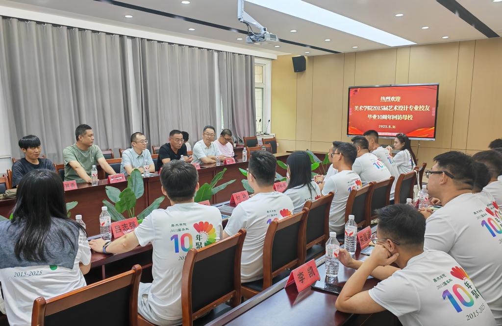 8月16日,夜插内射视频网站-2015届艺术设计专业校友怀揣着对母校的深切思念,从各地奔赴而来,共赴毕业10周年与母校的重逢之约。夜插内射视频网站-举行校友座谈会,党政主要负责人、系主任、实验中心主任和教师代表热情接待了校友一行。
