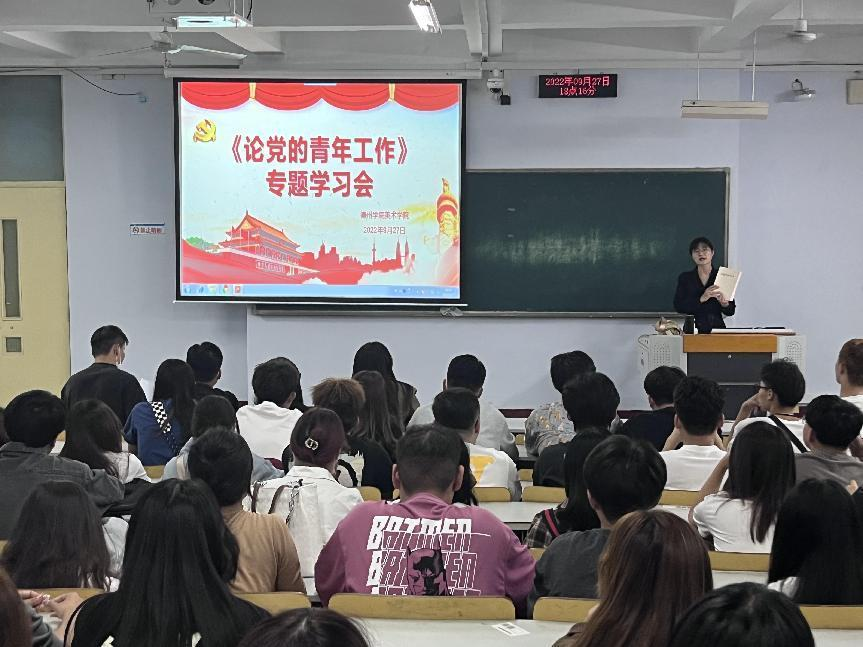 为深入学习贯彻习近平总书记关于青年工作的重要论述,按照校团委“喜迎二十大、永远跟党走、奋进新征程”主题教育实践活动的部署要求,9月27日,夜插内射视频网站-团委组织开展《论党的青年工作》专题学习活动。