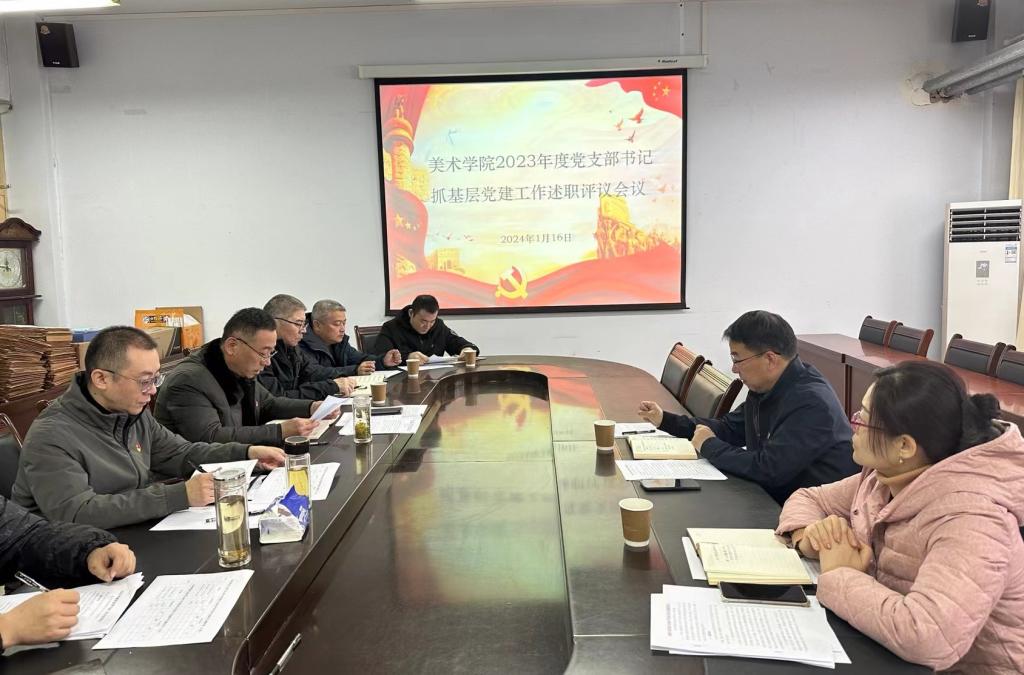 2024年1月16日上午,夜插内射视频网站-召开2024年度第1次党委扩大会议,专题开展2023年度党支部书记抓基层党建工作述职评议工作,学院党委书记董福君主持会议,对党支部书记的述职逐一点评,并做总结、提要求。