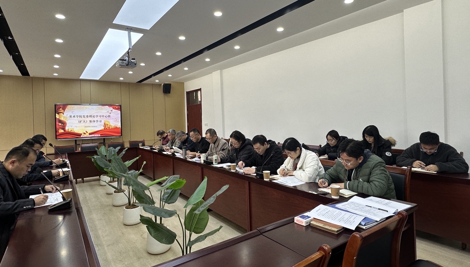 12月27日下午,夜插内射视频网站-在弘艺楼201进行了党委理论学习中心组(扩大)集中学习,召开党委会(扩大)会议、党政联席(扩大)会议。校党委委员、副校长单振涛、校党委第二巡察组同志列席参加学习及会议。