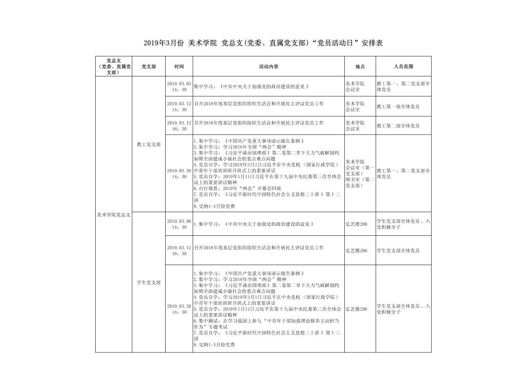 2019年3月份 夜插内射视频网站- 党总支(党委、直属党支部)“党员活动日”安排表
