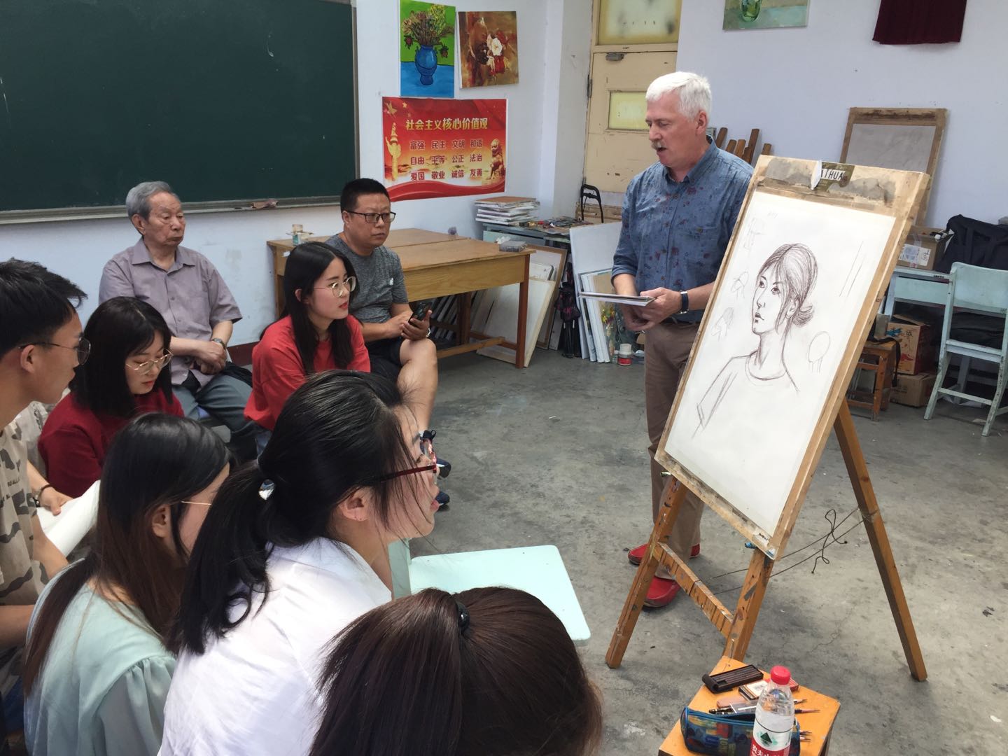 5月27日上午,俄罗斯画家安德列·卡洛里丘克在我院讲授素描大师课,此次大师课是2019圣彼得堡赫尔岑国立师范大学艺术大师班系列活动之一。夜插内射视频网站-师生代表参与了课程活动。