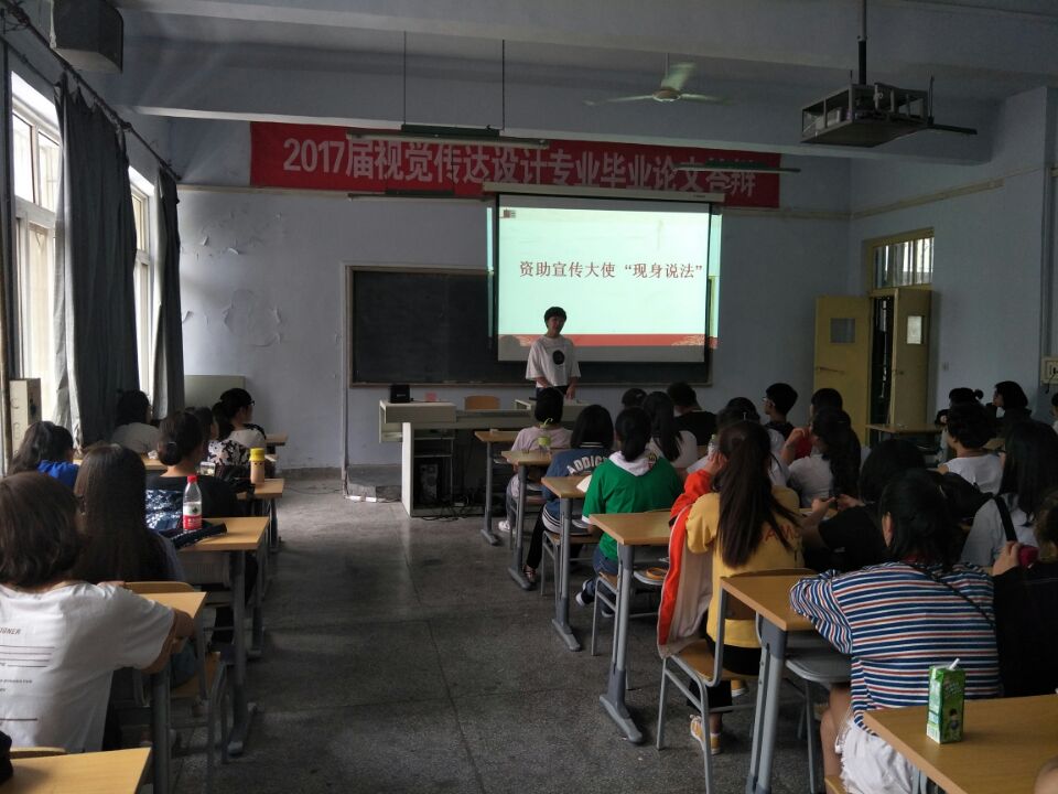 为了增强宣传教育效果,李姗姗老师还邀请了2015级、2016级享受过资助的学生作为宣传大使,来到现场为2017级新生现身说法。