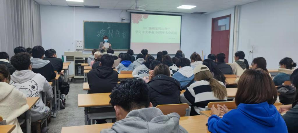 为了铭记先驱功勋,汲取奋进力量,激发同学们的爱国主义精神。2021年10月28日,夜插内射视频网站-在弘艺楼201组织21级学生共同学习了“习近平总书记纪念辛亥革命110周年讲话”的内容。2021级全体同学参加了此次学习活动。