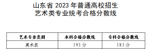 山东省2023年普通高校招生艺术类专业统考合格分数线